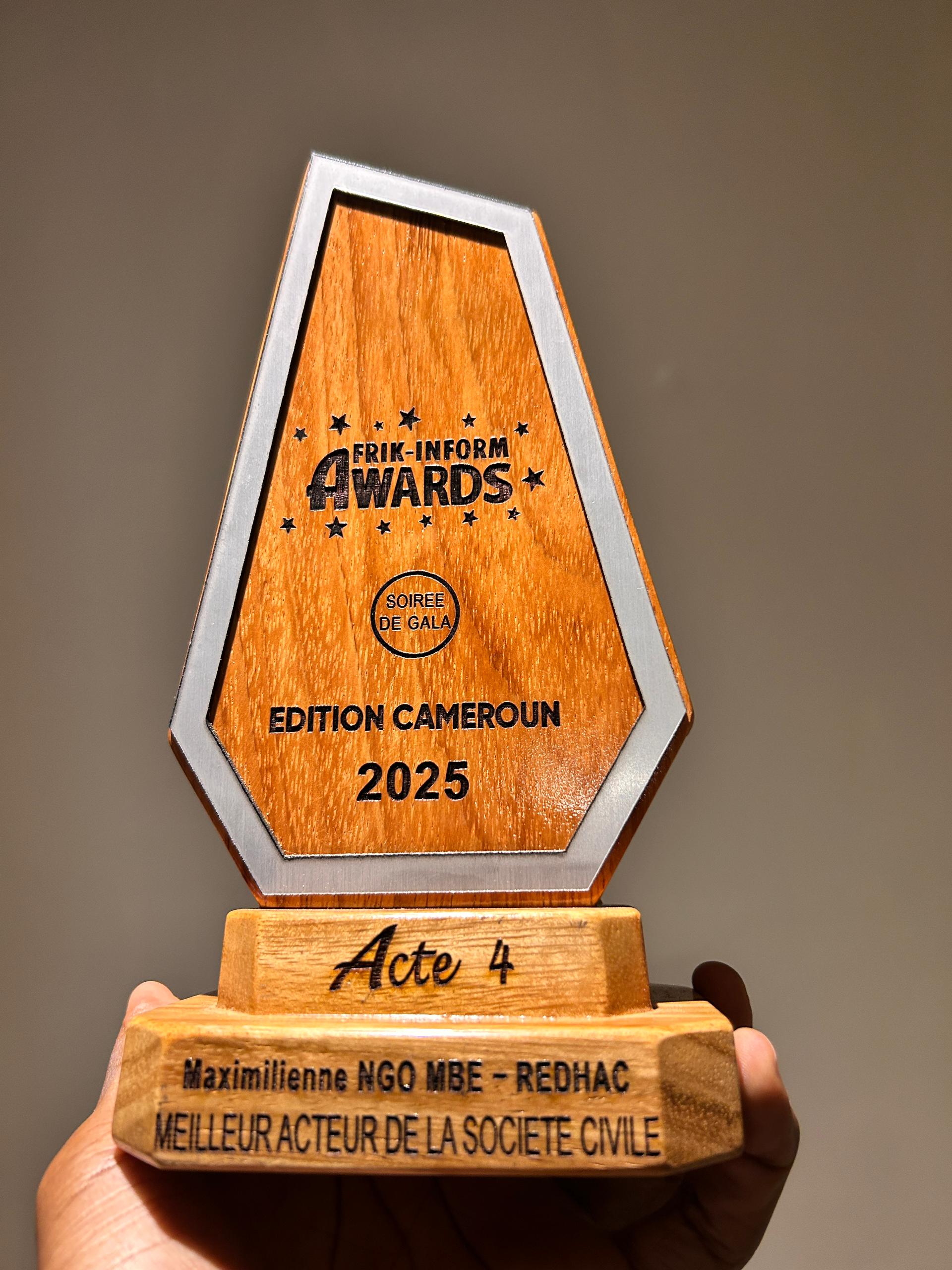 Dr. Maximilienne Ngo Mbe, Directrice exécutive du REDHAC, a reçu le prix du Meilleur Acteur de la Société Civile lors de la cérémonie des Afrik-inform Awards, qui s’est tenue le samedi 28 au Krystal Palace à Douala. En raison de son engagement pour la défense des droits humains à l’étranger, elle a été représentée à cette occasion par Me Alice Nkom, Co-présidente du conseil d’administration du REDHAC. Cette dernière a reçu le prix sous une salve d’applaudissements et de félicitations émanant du public.